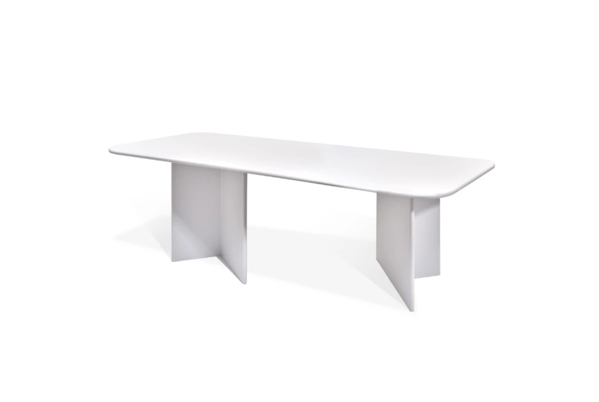 Soft Curve é uma mesa de desenho limpo e minimalista. A materialidade fria do lacado de aspeto quase clínico é apaziguada pelas linhas curvilíneas que a delineiam. A própria proporção e design da peça confere uma diversidade de utilizações/funções fugindo à exclusividade de mesa de jantar.